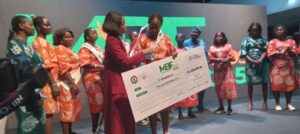 The State Commissioner for Agriculture and Food Systems, Ms. Abisola Olusanya, assisted by the Special Adviser to the Governor on Agriculture, Dr. Oluwarotimi Fashola, presented prizes to the overall winner, Oluwaseun Evelyn.