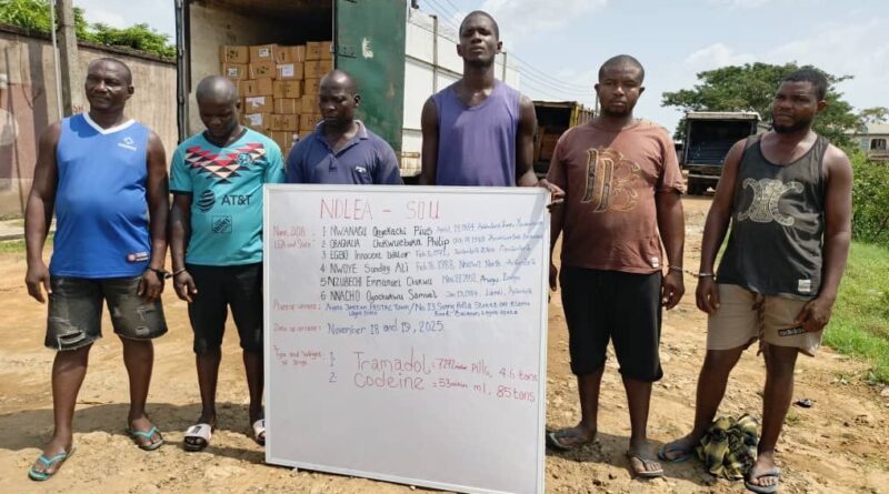 He added, “Two members of the DTO — Egbo Innocent Udalor and Chukwe Emmanuel — were trailed and arrested at Apple Junction, Festac area of Lagos on Wednesday 19th November while conveying 300 cartons of opioids in a truck. A follow-up operation to the syndicate’s warehouse at Sunny Billa East Street, Bucknor, on Thursday 20th November led to the arrest of Onyekachi Nwanagu and other members of his syndicate, including Nwoye Sunday Ali, Nnacho Ogochukwu, and Oraghalia Chukwuebuka Philip.”