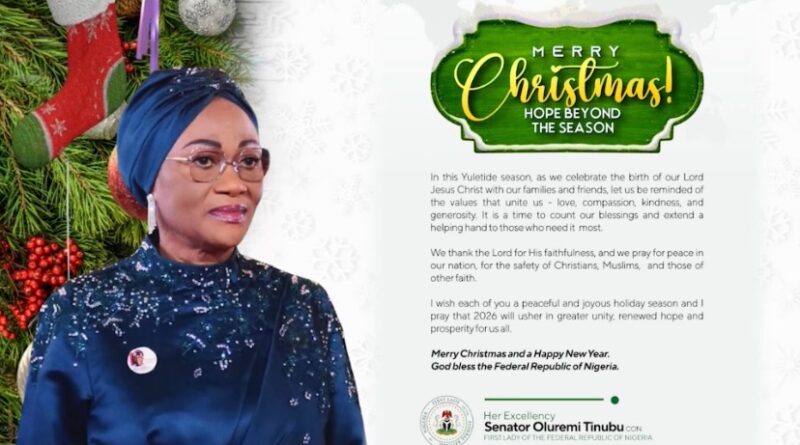 Christmas Message From the First Lady of the Federal Republic of Nigeria, Her Excellency, Senator Oluremi Tinubu, CON