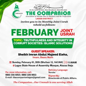 Photo News: Faces at the February Joint Usrah of The Companion, Lagos District, held at the Lagos State House of Assembly Mosque, Alausa