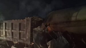 The accident which was alerted at 02:36 wee hours Saturday saw Lekki Phase II, Oniru and Epe II Fire Stations of the Agency raised to the scene after it was reported that an oncoming speeding 20 tonnes tipper truck from Epe end rammed from behind into a stationed 30 tonnes gas truck that failed to pull over from the highway.